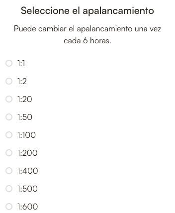 Tenga en cuenta: el apalancamiento ilimitado no está disponible para los siguientes instrumentos del trading: criptomonedas, energías, acciones e índices.