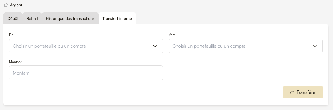 Vous pouvez également effectuer un transfert interne entre vos portefeuilles. Pour ce faire :