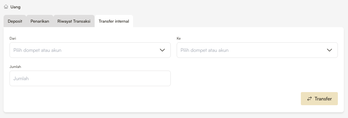 Anda juga dapat melakukan transfer internal antar dompet Anda. Untuk melakukannya:
