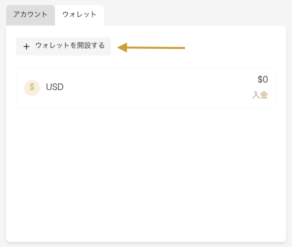 パーソナルエリアのダッシュボードから、新しいウォレットを追加することも可能です。