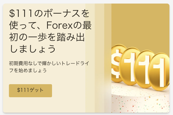 パーソナルエリアのメインページで$111のボーナスアカウントを開設できます