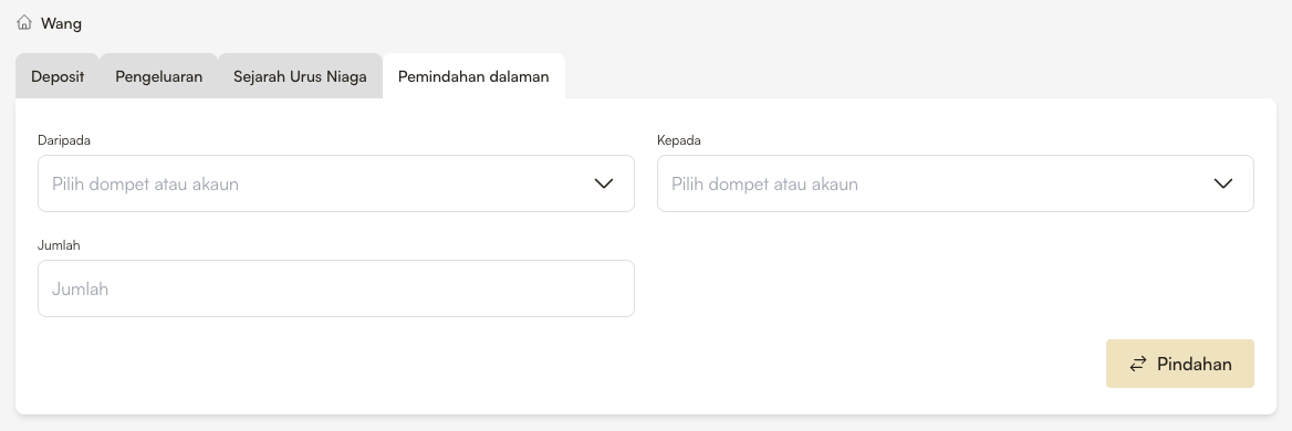 Jika anda perlu memindahkan wang antara dua dompet, ikuti langkah-langkah di bawah 👇