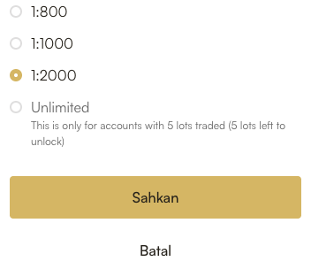 Keumpilan tanpa had tidak tersedia sewaktu mula-mula anda membuka akaun. Keumpilan tanpa had menjadi tersedia selepas mendagangkan 5 lot (500 sen lot).