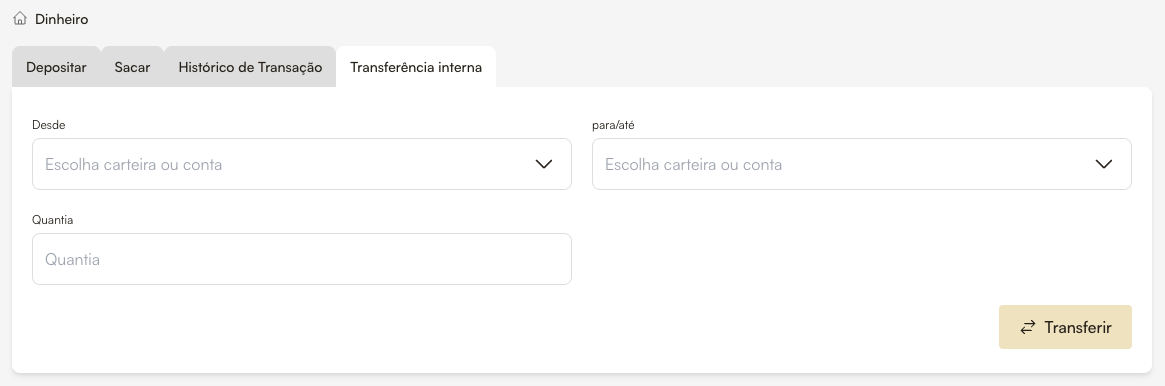 Escolha a Carteira a partir da qual será realizada a transferência interna.