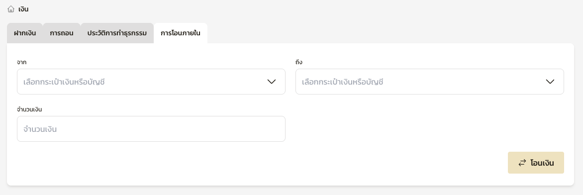 - เลือกกระเป๋าเงินที่ต้องการทำการโอนภายใน