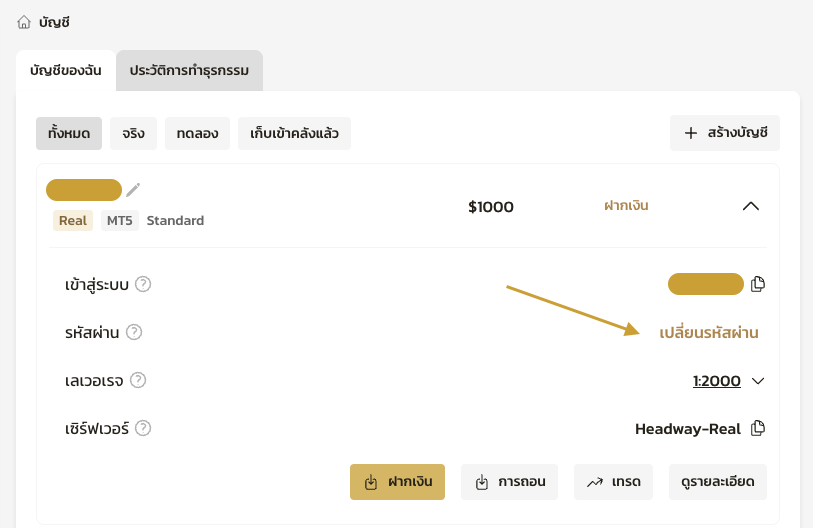ต้องการกู้คืนรหัสผ่านบัญชีเทรดของคุณใช่ไหม? เลือก "บัญชีของฉัน" ในเมนูพื้นที่ส่วนตัวของคุณ