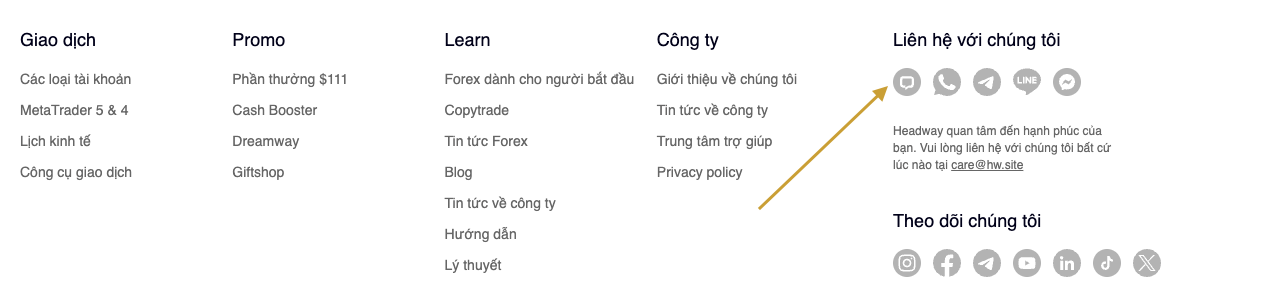 Bạn có thể gửi tin nhắn cho chúng tôi bất cứ lúc nào bằng cách nhấp vào widget "Hỗ trợ" ở góc dưới bên trái màn hình hoặc gửi email đến: care@hw.site.